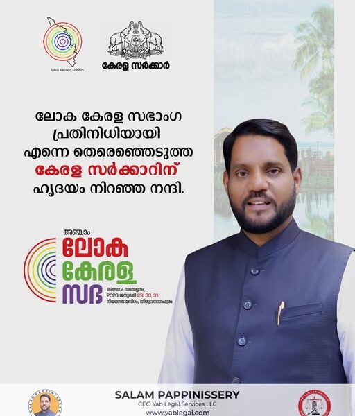 സലാം പാപ്പിനിശ്ശേരി ലോക കേരള സഭാംഗമായി വീണ്ടും തിരഞ്ഞെടുക്കപ്പെട്ടു; പ്രവാസി ക്ഷേമപ്രവർത്തനങ്ങൾക്കുള്ള തുടർച്ചയായ അംഗീകാരം